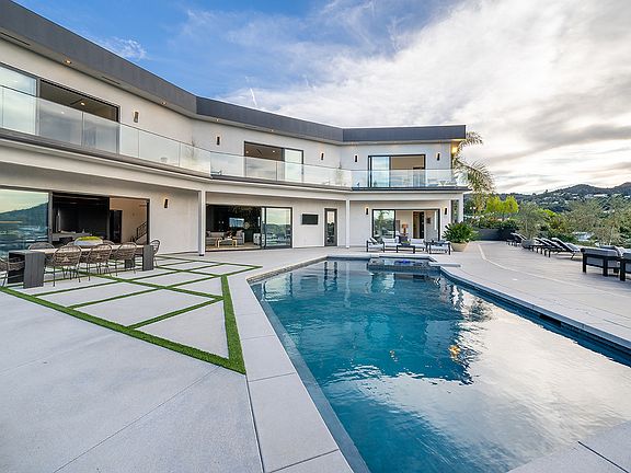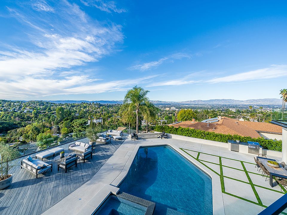 OPEN HOUSE: Sunday, 2/9/2020 (1:00p-4:00p) - Nestled in the hills of Encino...Explosive views dominate this architectural modern masterpiece which has been completed with impeccable attention to detail. High ceilings and a dramatic entry immediately draw you out to an entertainer's backyard, offering incredible sweeping views of the valley, mountains, and Van Nuys airport. Sparkly city lights surround at night. Pool/Spa/Baja, outdoor shower, BBQ & putting green complete this unbelievable outdoor oasis. Open concept interior is awash in natural light, offering captivating views from nearly every room in the house. Downstairs includes a gourmet dream kitchen w/ Dacor appliances & custom cabinetry, Large living area w/ fireplace & artistic wine room, state-of-the-art theatre, picturesque dining room, an en-suite bedroom/office + downstairs master suite. Upstairs, a gorgeous living area flush with views welcomes you, a perfect retreat before retiring. A wrap-around balcony connects upper bedrooms and living area, complementing the luxurious master retreat which boasts a HUGE walk in closet & luxurious spa quality bath complete with Japanese soaking tub & oversized shower that allows you to soak in views of the valley. Three additional en-suite bedrooms & laundry room complete the upstairs + Smart home, security cams and endless amenities. Amazing home! Located in the famed Lanai school district. Easy Westside access. Only minutes to the Blvd., offering upscale dining, theater, shopping, and houses of worship. Call Stacee for easy showings: 818-298-7552
