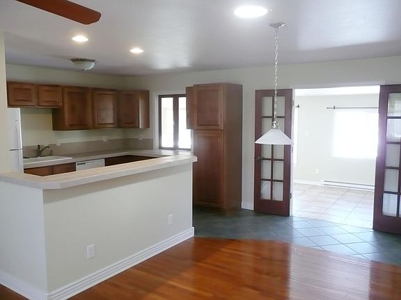 Show home quality. Nice house with 3 bedrooms, 2 bathrooms, pleasant kitchen with cherry cabinets. (1526 sqft) This open ranch has all hardwood floors in living room, beautiful tiled sunroom, with great mountain views. Washer and dryer hookups. Fenced back yard backs up to green belt. Close to Spring Canyon Park, schools. 1 car attached garage. Sorry, no pets.