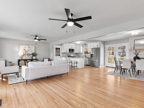 As you step inside, you're greeted by a spacious interior filled with natural light that seamlessly blends the living spaces. The kitchen boasts new cabinets extending to the ceiling, a large island work space, and a sleek gas range perfect for preparing a feast. The dining room, adorned with a beautiful brick fireplace, provides a cozy and elegant setting for meals, while french doors open to reveal a large deck overlooking the fenced-in backyard. This outdoor haven is perfect for gatherings, relaxation, and enjoying the tranquility of your private oasis.