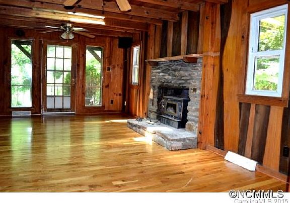 Creative style! Hand-crafted home with wormy chestnut salvaged from Biltmore Estate in main and guest house(not counted in SF, but measures 338 sf, BR, bath). Shop, garage, carport, tall walk-in rain shower, under counter mounted sink, granite counters, HW floors, double paned windows, beamed cilings, 2 skylights, stone FP with woodstove in each. Close to shopping and schools, but private country feel.
