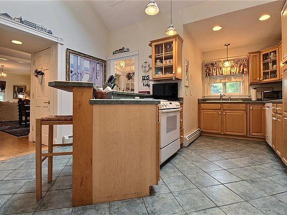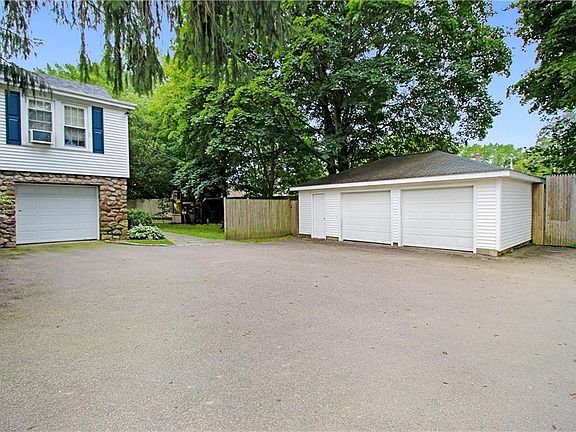 Custom built colonial nestled on a double lot emanates character and charm. A large farmer's porch welcomes guests and serves as a shady retreat on hot summer afternoons. The spacious interior of this 3BR, 2BA home boasts over 2100 sq ft! Natural light floods the kitchen through skylights in a vaulted ceiling and has an open dining area. A formal dining room is located beyond the kitchen which flows into an expansive living room. An office and full bath are also located on the first floor. Gleaming hardwood floors follow you upstairs where you will find 3 bedrooms, a den and a full bath. The kitchen provides access to an expansive side deck surrounded by privacy fencing where you can relax pool side by the above ground pool and hot tub or entertain family and friends. This home has fantastic curb appeal with beautifully manicured grounds and a fence lining the property for privacy. Additional features include a partially finished walkout basement, a 1 car integral garage and a 2 car detached garage. Minutes to the Interstate, beaches, shopping and all of Westerly's amenities. Property being sold with 390 Bradford Rd (Plat 23, Lot 52).