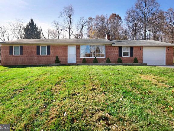 Move in ready! Brick rancher with Bow window in living room. Home has just been fully painted, including walls, trim, ceilings & doors! 3 bedrooms, 1 bath situated on .85 acre. Kitchen cabinets & carpet are only approx 3 years old. Lower level has 2 family rooms one with brick hearth, slate floors and stove pipe for wood stove, 2nd family room has new laminate floors. This room can be used for pool table, kids play room, office, theater or hobby room. Unfinished side (with freshly painted floor) is large enough for workshop. Laundry in lower level with a washer & dryer. Only 1 garage door but garage is large enough for 2 cars. (22x25) Garage has rear door that leads to back yard and steps to lower level. Backyard is private and has a beautiful water fall. Custom built enclosure perfect for cats, small dogs, birds or chickens!