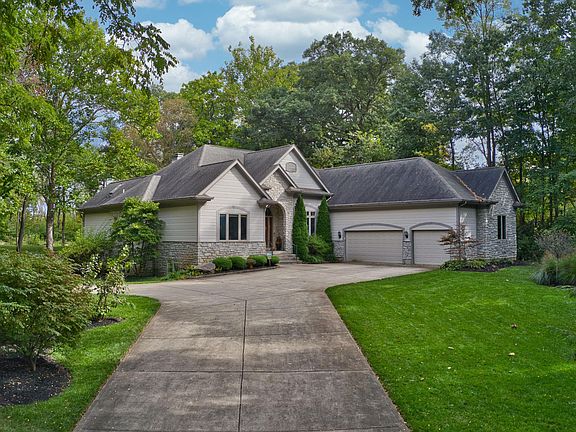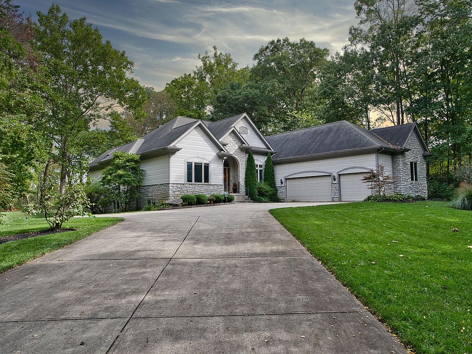 STUNNING custom built home with a beautiful view from every room of the 2+ acre lot. Upon entering the home you will admire the open floor plan to a great room with a gas fireplace and window wall w/ hardwood flooring & mantle with built in shelving. Gourmet kitchen features beautiful cabinetry, island w/ breakfast bar that also include an additional Formal dining room. You will enjoy sitting out back in your private 3-season room. Walkout basement is amazing, added bedroom/theater room that include 3 bedrooms, full bath, wet bar/library. Updates include clearing of 1/2 acre for a larger back yard 2019* New furnace & tankless water heater 2020* New water softener system 2020* 4th bedroom/theater room/ Gym room 2020* His & Hers professional closet including another in the basement. This property will make you feel right at home.