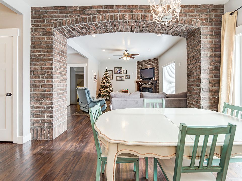 Beautiful new home in nice, established neighborhood with tons of upgrades. It has a fully fenced in yard with beautiful landscaping, a kids playground area and a huge RV pad. The interior of the home has amazing features such as 3 tone paint with gray walls, white cabinets with granite throughout, stainless steel appliances, dark wood laminate flooring and a unique brick archway with matching fireplace and backsplash.