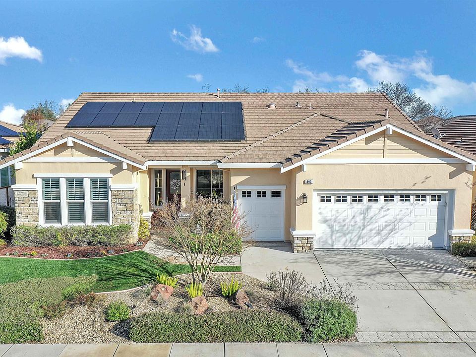 Step into your new sanctuary at 392 Earlham Way, where elegance and comfort converge in this sought-after Redhaven model, a pinnacle of luxury living in Summerset 4. Boasting 2,195 square feet, 2 bedrooms, an office, and 2.5 baths, this residence is a testament to meticulous design and thoughtful features. The heart of the home, a remodeled kitchen, with upgraded cabinets, granite counters, and a walnut-topped island, creating a culinary haven. Cost efficient amenities including paid solar, updated air conditioner and heating, HEPA air filtrations system and tankless water heater. Modern living is at its finest with updated appliances and built-in surround sound, elevating both functionality and entertainment. As you step into the meticulously landscaped backyard, tranquility embraces you. Carefully selected plants provide both privacy and visual delight, creating an oasis for relaxation. The back patio offers ample space for dining or unwinding, and the privacy-enclosed hot tub offers a secluded retreat. Attention to detail is evident throughout the home, ensuring a harmonious blend of style and comfort. You won’t want to miss this home.