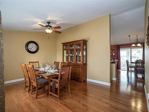 Brick and vinyl siding home that will impress. Shaded front and back yards outside, open floor plan inside: dining room, and breakfast area adjoining the kitchen, that leads to the enclosed elevated sunroom. Wood floors, bright colors, updated lighting fixtures, bathrooms, vaulted ceilings, lots of natural light. 3 bedrooms on main floor, one bedroom in the lower level. Of course, a finished walkout basement with a brand-new bathroom, tile floors, custom built bar and entertainment area, and ample workshop area and laundry space. Additionally, the nicest block patio space you've ever seen, landscaped, under the trees and overlooking the neighborhood private lake.