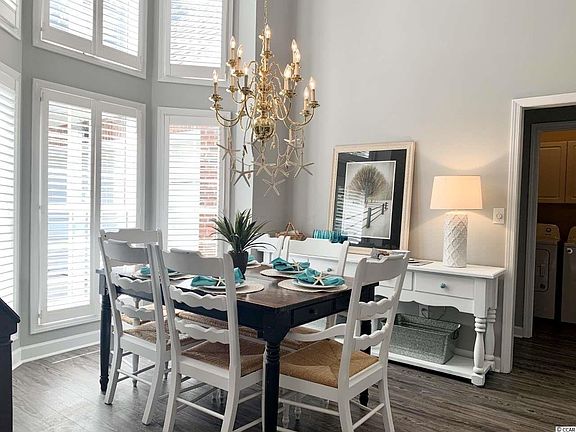 Ricefields - Pawleys Island - Sought after community - This 4 Bedroom, 3 Full Bath traditional brick home is near move in ready with a great floor plan for all buyer types! When entering this home you are greeted with soaring cathedral ceilings in the formal dining room, living room, kitchen and the den. The master suite is separated from the other guest rooms for privacy and has tray ceilings, walk in closet, double vanity and both shower and garden tub. The left side of the home adorns the kitchen, eat in dining space, breakfast bar, laundry, pantry, double oven and more. Down the back hall is two rear guest rooms and one full bath. On the back side of the home is a cozy den with a fire place as well as large tiled sun room with views of the fenced in back yard with mature landscaping. A large forth bedroom and bath is upstairs over the 2 car garage. Fresh paint, new flooring throughout. The Ricefields community boast wonderful neighborhood amenities sidewalks, a boat landing and river-walk along the Waccamaw River, a community pool. Come take a look! All square footage is approximate and is not guaranteed. Buyer is responsible for verification.