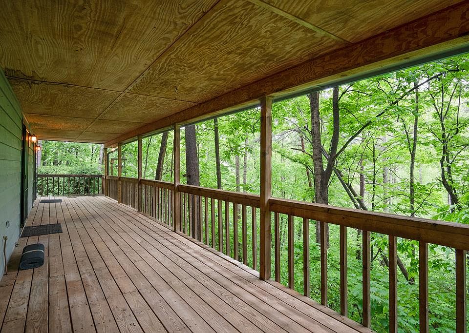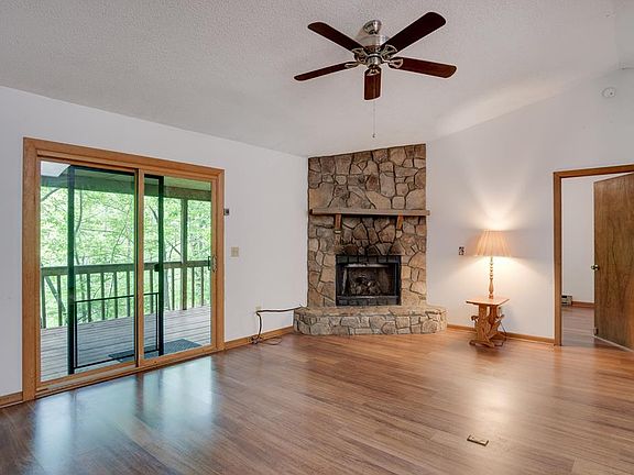 Tucked away in the woods this 2/2 has that mountain, tree house feeling! Easy paved access, minimal yard maintenance and single level living makes this home perfect vacation cabin for year round living! Situated on 5 private, wooded acres yet close to Franklin's shopping, restaurants and breweries. You're sure to enjoy your time on the large covered porch with access from the living area and both master suites. Feel safe year around with a gas log fireplace and whole house generator. Additional features include open concept, split bedrooms, handicap ramp, storage building, lower deck and pet fencing. New roof, dishwasher and deck supports along with other recent repairs so you can just move in and enjoy!!