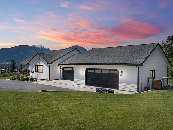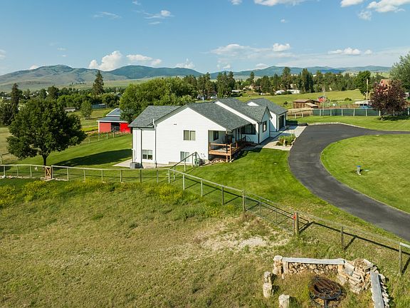 Welcome to 392 Hidden Valley Road S in the stunning Florence, Montana. Not only is this house absolutely stunning inside, the perfect sized acreage with awe-inspiring views make this the absolutely perfect home for just about every buyer. Perched up on a knoll allows for 365 degree views of the Bitterroot offering daily inspiration for the Montana lifestyle. Arriving at this home you're greeted by a circular style driveway for easy access in and out of the property, and plenty of parking for future get togethers. The crisp white house with handsome black accents feels fresh and inviting as you walk up to the front door. While entering your new home you're greeted by surprisingly tall vaulted ceilings and an open living, dining and kitchen area. Ample seating around the kitchen island doubles as dining space, but in the event of extra guests theres plenty of space to add tables for more seating. The generous living room with cozy electric fire place offers substantial space for watching the game or a movie night with space to sprawl. The kitchen is the crown jewel of the interior with features to make ones heart pitter patter. Farmhouse style cabinetry with two tones including quartz counters and butcher block island. Every detail has been considered and is evident in this remodel, take note of the brick veneer backsplash, shiplap ceiling, single basin farm sink, double ovens, built in refrigerator and pantry that would make Chip and Joanna proud. Navigate back to the huge mud room that accommodates the standard Montana lifestyle. Room for your waders, muck boots, snow gear, or dog room, you name it, built-ins and a sink finish off this space. Beyond that is the garages ready for two cars and additional toys. A future owner could always remove some walls in the last bay and have additional parking or keep your in-home gym in place and never leave the comfort of your property. The space is heated and currently set up for an excellent place to get in that early morning work out. Back inside the home head back towards the front door and continue down the wide hallway to the back three bedrooms. Off of the main living room this affords a nice buffer for sleeping and not disturbing the household when out in the main area. Two perfectly sized bedrooms with lovely views over the back of the property accompany the full bathroom all recently updated. Towards the front of the home is the primary bedroom with en suite ready to add your touch. Downstairs provides additional living space with a large family room, built in fireplace, room for sectionals, a projector screen area (if desired) and room for a wet bar. Although the raw edge bar does not stay with this home it gives one an idea of what could easily be added for fantastic entertaining or hosting of longer term guests. Cabinets and sink in wet bar area will stay, wine fridge is included. The laundry room is on the other side of the stairs surrounded by multiple office nooks for those that can work from home. Or if one has hobbies that can utilize the lovely light and space to spread out and craft your talents. The last bedroom and bathroom of the home are tucked away to give privacy and serenity to guests or family members. The walk out doors bring you outside, straight to the hot tub to enjoy on a starry Montana night. Relax in the warm waters as you take in the majority of the five acres looking out over the valley. The house has been beautifully updated throughout including a new furnace, AC and tankless water heater in 2020. The quintessential red barn in back is set to go with multiple stalls and turn key tack room with heat. Multiple frost frees, animal pens, chicken coop, shed, RV hookups and more. Don't miss out on the opportunity to see this lovely home today!