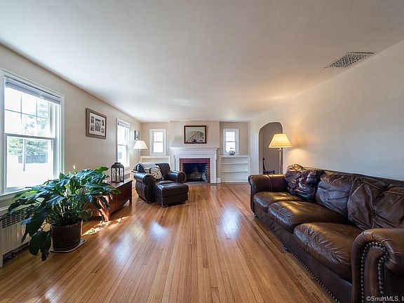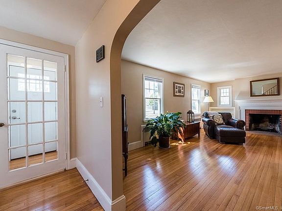 Located in the heart of Old Saybrook!!! Walk to town - Restaurants, Shops, The Kate! Need a large in-home office or studio? Maybe a first floor in-law suite? Then you must see this new listing! Charming c.1942 4/5 bedroom Colonial with 3 full baths offers all the charm of yesteryear. Arched entry and vestibule to a large, sunny living room with a fireplace centered between built-ins, a generous sized dining room with charming corner built-in, French doors to fully enclosed porch. The kitchen has plenty of counter space, newer gas stove top and double ovens, corian countertops. A special part of this house boasts a large second private entryway to a generous 23'x20' addition with separate bedroom and full bath -- this space is perfect for in-law suite, studio, in-home office. On the second floor are four more bedrooms plus one full main bath. There's an oversized walk-in closet in the main hall - with a little remodeling, this would be a perfect future en-suite bath to the master bedroom. Beautiful hardwood floors throughout, some rooms freshly painted. Newer gas furnace and electrical upgrades. Vinyl windows and vinyl siding for carefree living. In the full basement, there is a stone fireplace.