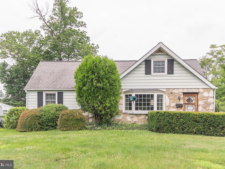 This quaint stone front cape is located in the lovely neighborhood of Spring Lake Farm. Front entrance into the large bright and cheery living room with a triple bay window and hardwood floors. The kitchen offers plenty of cabinet space and a large connected island providing additional counter space or a breakfast bar. Off the kitchen is a separate dining area with hardwood floors overlooking the private backyard through the large bay window. Step out into the screened-in porch which is perfect to enjoy your morning coffee. Off the porch is a deck great for family BBQ's and entertaining. The first floor primary bedroom has hardwood floors, built-ins and a private powder room. There is a full bath on the first level with tub/shower. The second level offers an abundance of space with unlimited potential. Down the long driveway sits a oversized 2 car detached garage. The full basement provides plenty of storage. All of this in this great home plus close to major highways, minutes to local rail lines and short distance to local shops and eateries. This lovely property was a 3 bedroom and sellers expanded 2nd for their master bedroom and 3rd for the breakfast/dining area off kitchen. Lots of potential awaits a new buyer.