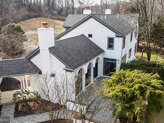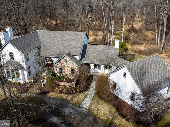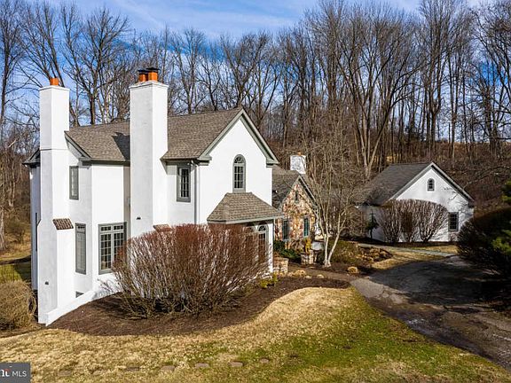 Welcome to 392 Merlin Road. This exquisite, custom built home, designed by Ann Capron, is situated on 10.3 pristine acres in East Pikeland Township. As you travel down the driveway toward the home, you will notice Pigeon Run Creek along the left side of the property which extends around the rear. As you draw near the home, you are greeted by an extended circular driveway with landscaped island and a covered breezeway that leads to the detached 2 Car Garage. This stunning home features lots of natural lighting with beautiful views of the property from the many palladium and transom windows. There are arched doorways, skylights, art niches, 4 fireplaces, and wet bar in the Library. All of which are complimented by beautiful oak hardwood floors and terra cotta tile flooring that~s accented with stained crown moldings and trim. As you enter through the ornate wood entry door, you are greeted by the two-story foyer with curved staircase. The spacious, sunken Living Room with marble fireplace is surrounded by custom windows with transoms and open to the formal Dining Room with built-in serving station and beautiful views of the rear yard. The Library has lots of built-in bookshelves and cabinetry along with a wet bar, hardwood flooring and palladium windows. The Kitchen features tiled island with cooktop, Stainless-Steel refrigerator and dishwasher, trash compactor, microwave and wall oven; along with 3 double-door pantry closets and terra cotta flooring. The Breakfast Room with desk area and wine rack has a French door which leads out to the flagstone terrace with beautiful views of the wooded rear yard and creek. The Great Room with cathedral beamed ceiling and fireplace is flanked by custom cabinetry and 3 French palladium doors leading out to the walled terrace. Completing the First Floor is a large walk-in coat closet, 2 additional closets and large Powder Room. As you ascend upstairs, you will notice the art niche and recessed lighting. The Master Bedroom Suite has a vaulted ceiling, fireplace and very large dressing area with built-ins and 3 closets; one which is walk-in. The enormous Master Bath features twin vanities, steam shower, jetted tub and 2 private commode areas, one of which has a bidet. There is also a skylight and marble flooring. The basement is partially finished. It features a Bedroom with an en suite bath and another room with outside entrance to the side yard. This lower level would be perfect as an in-law or au-pair suite. The large laundry room features utility tub, washer, dryer and large closet. The remaining basement could be finished off easily into a wonderful recreation area. Don't miss out on this unique opportunity to own this beautiful home on such a fantastic setting.