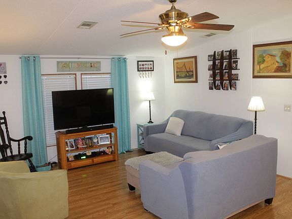 ***CONTACT LISTING AGENT DIRECTLY FOR YOUR PRIVATE EXCLUSIVE TOUR**** MOBILEHOMELADY dot COM*** This home is on leased land with a low monthly fee of 467.38 MOVE-IN READY HOME IN LIKE-NEW CONDITION! VERY OPEN FLOOR PLAN FILLED WITH UPGRADED FEATURES! NEWER 2015 HVAC UNIT, NEW 2021 ROOF! WHOLE HOUSE WATER FILTER ALONG WITH FANS UNDER THE HOME TO KEEP AIR CIRCULATING! MOTIVATED! THREE BEDROOM, AND TWO BATHROOM. A GREAT, AFFORDABLE FLORIDA HOME WITH A GOLF CART INCLUDED!! FOYER/ENTRYWAY 4' 3 x 9 Enter the home into the bright and open large living/dining LIVING ROOM 13' 8 x 12' 6 Perfect sized living room with laminate wood flooring, lighted ceiling fan, open to the dining room DINING 9' 1 x 9 Spacious Dining Area with laminate wood flooring, open to the living room KITCHEN Gourmet Style Kitchen with Island and laminate wood flooring! Features Include Corian Counter tops with tiled back-splash, Double Sink with sprayer, Garbage Disposal, Lots of KraftMaid Drawers and Cabinets, KraftMaid Pantry with Slide outs. Appliances Include: GE Stove, New Built-in Microwave, Whirlpool Side by Side Refrigerator with freezer in the bottom. BREAKFAST NOOK 8' 3 x 9' 1 A cozy breakfast nook that is large enough to fit a small table or bistro set. Feature a Dry Bar, laminate wood flooring a double door entry to Florida Room MASTER RETREAT 12' 6 x 12 This King-Sized Master Retreat is Beautiful, with a Large mirrored closet that measures 2' 2 x8. . Open to Private Master Bath MASTER BATH 5' 6 x 7' 6 Massive Bath with Dual Vanity with Mirror, Upgraded garden bathtub and shower, a large linen closet that measures 3' 8 x 2, ceramic tile flooring GUEST ROOM 1 11- x 9' 4 Laminate wood flooring with a lighted ceiling fan, closet measures 5' 7 x 3' 8 HALL BATH Ceramic Tile flooring with the perfect size updated vanity and an upgraded walk in shower. GUEST ROOM 2 11' 3 x 8'6 Laminate wood flooring with a lighted ceiling fan, closet measures 5' 2 x 4 LAUNDRY ROOM Off kitchen/dining, Cabinets above as well as extra Shelving, Dryer & Newer Washer FLORIDA ROOM 10' x 17' 4' Located off the Kitchen with Glass Double Door Entry this Gorgeous Florida Room Features Ceramic Tile with Cable Hook up and a hook up for an air conditioner ! Perfect Place to Entertain Family, Friends, and Even Yourself! Exterior Entrance/Exit to the Enlarged Screened Florida Room as well as the carport! Currently being used as "The Man Cave" SCREENED FLORIDA ROOM 39' 8 x 13' 5 WELCOME TO THE PORCH!!! WOW!!!! You cannot beat this, located off the Enclosed Florida Room and just a few steps away from the carport is a beautiful Screened Florida Room with Painted Flooring and 2 Ceiling Fans! Perfect for Entertaining, BBQ's and watching the game or race! Cable ready!! SHED 8 x 10 Perfect place for all your extras with Shelving ABOUT THE PARK: Cypress Creek Village is a Gorgeous Gated Community in a Country Setting. Located in South East Winter Haven just minutes away from HWY 27 Makes for Easy Access to Orlando. The Daily, Weekly and Monthly Activities are held in the Residents Club House. You will Love the Large Heated Swimming Pool and Spa. Additional Features: Onsite State of the Art Work Out Facility, and a Gorgeous Billiard Room, and Shuffleboard. One of Winter Haven's Golf Courses is Right Across the Street! You will Love Living Here! There is Always Something Going on at the Club House and the Grounds are Very Manicured! No Credit Check with Application! Cypress Creek Village is located 1/2 mile west of HWY 27, right off Dundee Road (SR542). Winter Haven is a beautiful area which boasts the "Chain of Lakes" - 16 lakes connected by channels. There are many excellent shopping centers including a Wal-Mart Super Center on Cypress Gardens Blvd. Winter Haven Hospital, Heart of Florida Hospital....not to mention the many lakes and golf courses. All of this is within 10 miles of Cypress Creek Village. PLUS, The Park is 45 miles to all the Disney attractions, 40 miles to Bush Ga