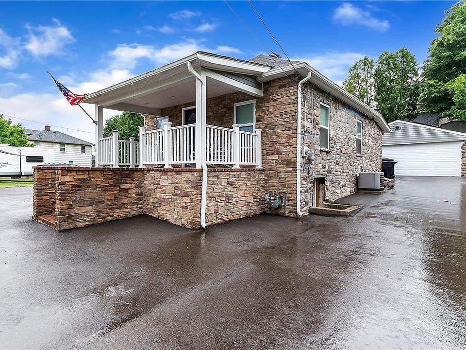 Welcome home to this beautiful stone home located in Moon Area School District. This house is conveniently located to the 376 and shopping. This 2 bedroom home has been completely remodeled inside and out. The outside of the home has all new stonework and a beautiful brick porch. There is a large 2 car attached garage. There is parking on both sides of this home, perfect for entertaining. Walking in one will notice all the updates. This home has a newer a/c unit, furnace, windows, solar panels, plumbing, electric, retaining wall, roof and gutters. There is a room added to the main level that is great for an office space. There is a room that connects the house to the garage that makes for great storage. The finished basement has an addition 2 finished areas for entertaining. No need to look any further.