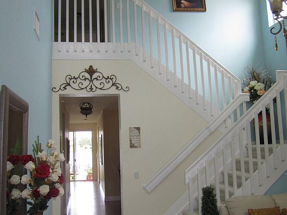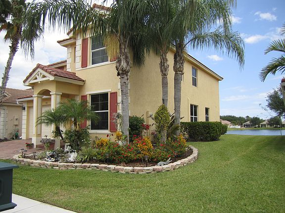 Beautiful 5 bedroom, with 3 full bathrooms, porcelain tile installed diagonal on the main floor with a marble medallion, open ceiling all the way to the second floor with an elegant chandelier. It has one bedroom downstairs and a full bathroom. Kitchen have been upgraded with crown molding, light valance, granite C/top, 42" height cabinets some glass doors and stainless still appliances. Second floor have carpet and have 4 bedrooms with 2 bathrooms. Master bathroom has a Jacuzzi, a separate shower, a double sink , separate close area for a toilet. Master bedroom has two walking closets, vaulted ceiling and a large window looking at the lake. A back porch with a gorgeous view of the lake and extra room for a swimming pool .This house it is on a man gated community, with two convenience exit/entrances, one exit to 441 and the other to Lyons Rd. This community is located close to turnpike, Wellington Moll and Hospitals. Community have a swimming pool, a Jacuzzi, Club house, Gym, Tennis court, basketball court, 3 parks for kids, very family oriented. All the public schools are great from primary to high school, no need to pay for a private school. This house won't stay long before is gone! One of the owners has a Real state License; call me to set up an appointment at 561-275-3602.