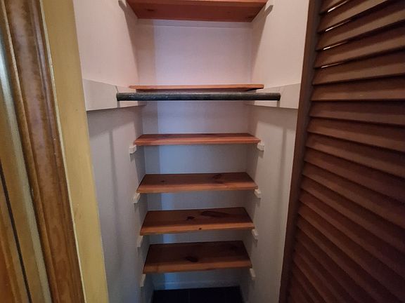 Smaller storage closetStacked washer and dryerOptional gas stoveShort gravel drivewaySpacious closet for clothing