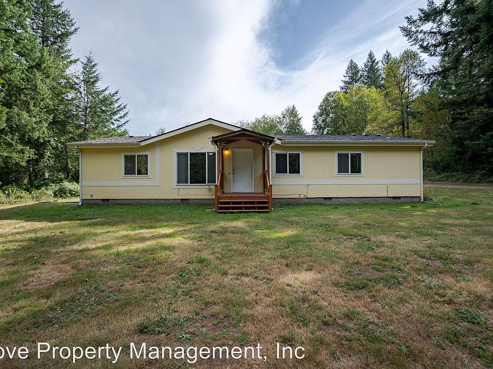 Modular Home 3 Bedroom 2 Bath Rural Washougal Property - Shared Driveway - For a private tour or additional information email rentals@dovepropertymanagement.com or call 360-448-2851 Located in rural Washougal on large lot this 3 bedroom 2 bath modular home was built in 2006 and offers approximately 1400 square feet of living space. Living room with vaulted ceiling and large picture window. Master bedroom with vaulted ceiling, master bathroom has a large soak bath tub, separate full sized shower and wardrobe closet. Kitchen recently updated with new vinyl, laminate counters and cabinets. Kitchen has breakfast bar and dining room with sliding glass door to covered deck. Appliances included, range, dishwasher and refrigerator. Washer and dyer connection provided. Spacious family room with vaulted ceiling. Two additional bedrooms and full bath. Covered front porch and back porch, mud room and exterior storage shed with power. NO GARAGE Property is on septic and well. Caretaker will mow, change water filter and inspect septic system on regular basis. Property and out buildings behind are not included in the rental. Washougal School District (to be verified by applicant via school boundary maps) Elementary: Cape-Horn Skye Middle: Canyon Creek High: Washougal 15 minute drive to downtown Washougal, SR-14, Washougal River State Park, fishing, hunting, boating and more outdoor activities. Application Fee: $45.00 per applicant over 18 years of age Non- Refundable Cleaning Fee: $500. Please Note: Terms and Availability Subject to Change without Notice Equal Opportunity Housing Provider Disclaimer:Property amenities/features listed above are deemed reliable but are not guaranteed. Prospective applicants should verify all amenities/features to their satisfaction. Landlord is not liable for any typographical errors or mistakes in amenities/features listed. (RLNE5140510)