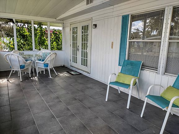 Cute, adorable, cozy, and bright 2 bedroom 2 bath manufactured home is TURNKEY and features a huge screened-in porch that spans the entire 24' width of the home! Come in the French doors to a nice open living room, dining area, and kitchen where highlights include NEW WHITE CABINETS with soft close drawers, countertops with stone backsplash, and stainless steel appliances!! Plus a large island with bar stools and a lighted pot rack completes the kitchen, also contains even more storage space as well as the pull-out recycle / trash drawer. Updates include laminate floor and subfloors throughout the home and tiled baths. Neutral colors, drywall ceilings, and walls with crown molding and 4" baseboards. New vanity in guest bath, tile shower & updated shower doors in master ensuite. The generous main bedroom has two closets, a cozy nook by the window, and a large walk-in closet. It's cute adorable, cozy, and bright located on a quiet street in an active 55+ community that is pet friendly and offers planned activities, 5 pools, 4 clubhouses, a fishing pier, Marina with wet and dry storage, a dog park and so much more! Lot rent includes all amenities, lawn mowing and trimming, sewer water trash, and annual taxes, $892.49 a month. All listing information is deemed reliable but not guaranteed and should be independently verified through personal inspection by appropriate professionals. Integrity Mobile Home Sales cannot guarantee or warrant the accuracy of this information, measurements, or condition of any property. Measurements are approximate. Lot rent is subject to change.