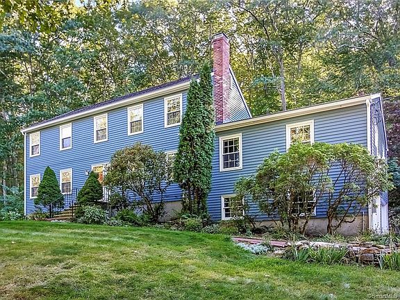 Traditional 4BR Center Hall Colonial beautifully set on over 3 acres with large level yard! Formal living room with hardwood floors, crown molding and newer pellet stove; formal dining room with hardwood floors/crown molding to kitchen with greenhouse window and eating area with sliders to the deck. Expansive family room with vaulted ceiling with exposed beams, floor to ceiling raised hearth brick fireplace as well as second set of sliders to the deck. Main floor bedroom/office; second floor boasts master bedroom with hardwood floors and bath and two additional bedrooms with hardwood floors. Main floor laundry. Freshly painted interior and exterior - Well maintained, upgraded insulation, new gutter, whole house fan. Private landscaping with stone walls, deck, shed, two car garage! Conveniently located - Minutes to the center of Southbury