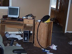Open Concept kitchen and Dining room area. Large Living room -Good size bedrooms with one and one half baths. One acre lot with the house setting towards the back of the lot away from the road for a nice quiet setting. Needs complete renovation but well worth it. Sold as is.