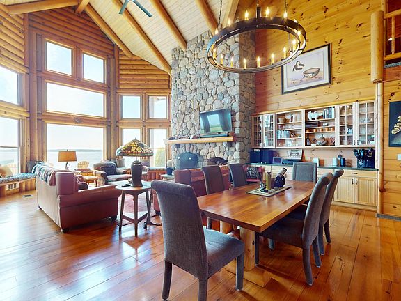 Premiere log home on the shores of Lake Champlain. This hand crafted lodge sits proudly on the just less then 300' of direct lakefront while facing south east. On a clear day you can see as far as the White Mountains in NH over the Vermont Green Mountains. Well known architect has made sure everything is perfect. Large open floor plan for family to enjoy summers on the lake. Four car garage with perfect placement to have living space upstairs. Massive open deck on the lake side of house and screen porch on north side for summer coolness. Around 30 miles to be in Montreal, 5 miles to Vermont and 20 miles to Plattsburgh. Public road but very quiet dead end. Marc Camens is architect. (list of upgrades available)