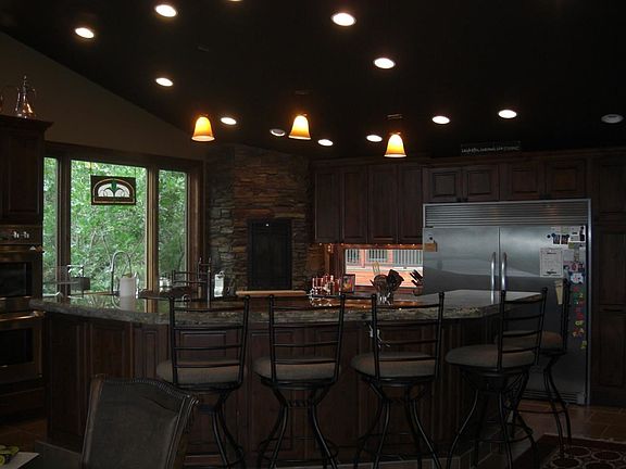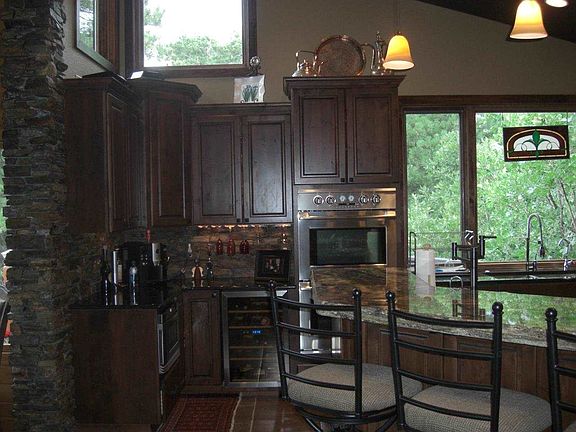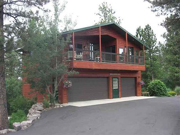 View Spearfish Canyon from the rim from main floor rooms & while sitting on the deck of this unique custom home. The private electronic security gate starts the venture into this luxury property of 4.06 A. which has 8 garages & 916 sq ft guest quarters. The guest quarters has 2 bedrooms, 1 bath, kitchen/dining/living area & private deck. The main house has a large gourmet kitchen with gas fireplace, large stainless double refrigerator/freezer, large center island that seats 5, desk area & wine frig.