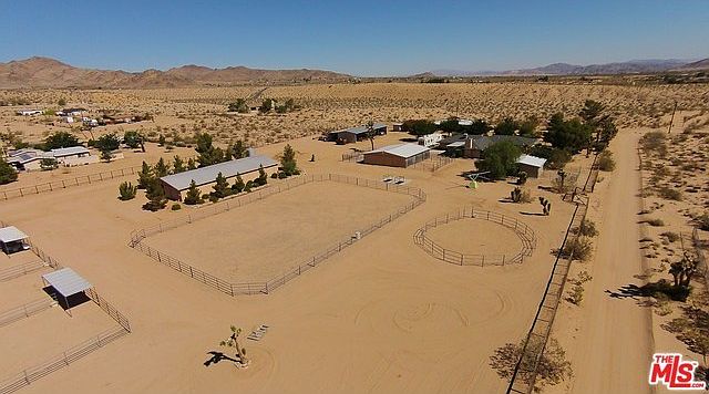 Attention horsemen - especially trainers. On 5 acres nearly all cleared and graded with plenty of room to park trucks & trailers. Main house 3 bedroom 2 bath. Guest house 2 bedroom 1 bath Panoramic 360 degree view from any place on the property.Adjacent to BLM Land w/miles of riding trails,scenery that will take you weeks to explore. The barn, corrals, hot walker, hay barn cater to the high-end equestrian enthusiast while the home; Main home is complete with fireplace, entertainment center. Master bedroom has a jetted tub, walk in closets. RV hookups for your friends to enjoy,3-car attached garage.You could look the rest of your life never seeing another property like this one; it is truly remarkable and now it's Your turn to live the dream. See attached pages for full description of the home and\ amenities. Main house freshly painted, newer roof, AC unit. Significant sunsets/sunrises, area nicely accommodates horses and other farm-type animals,pristine air quality pleasant high desert