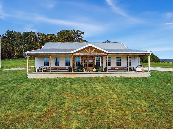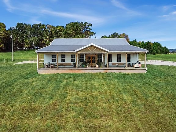 This modern Farmhouse on 24.87 acres located in beautiful middle Tennessee with views of breathtaking mountains. This property has all the charm of a country farm and all the craftsmanship of a newly constructed home. With 9ft ceilings, insulated garages, 6" exterior walls, leather granite countertops and large bedrooms, you will enjoy the luxuries this house has to offer. The open floor plan is a host's dream with plumbing already installed for an outdoor kitchen underneath an oversized covered patio! The brilliance of this charming property continues outside to green acres of rolling hills partially fenced, a 40x60 horse barn WITH water and electric, horse stables, and a roping arena. Sit on your expansive 60' wide front porch and enjoy the evening views! Don't wait to own your own middle Tennessee ranch!