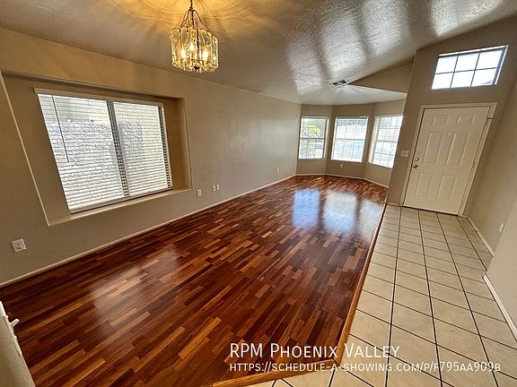 **NO Carpet in the Stunner** Warm Custom warm paint throughout with wood plank flooring in the bedrooms! Formal living room with bay windows, tile, wood laminate and great natural light. Open concept kitchen/den with vaulted ceilings. Kitchen includes all appliances, bright white cabinets and kitchen island. Spacious primary suite with wood plank flooring, walk in closet, private bath offering dual sinks separate garden tub, stand up shower that has been refinished and separate toilet room. Guest bathroom with shower/tub. Guest bedrooms with side by side closets and beautiful wood plank flooring! Laundry room with washer & dryer hook ups. Easy to maintain desert landscaping front & back. Awesome location close to the 202 & shopping Home is friendly to up to 2 spayed/neutered pets with additional $450 per pet fee. We do not list on CRAIGSLIST OR FACEBOOK MARKETPLACE SO IF YOU SEE IT ON THERE IT IS A SCAM $50.00 non-refundable application fee per adult, age 18 or over. Base rent does not include monthly 5% admin fee. Full security deposit $2099 + $250 lease set up is due upon approval. Move in date must be between 7 & 30 days from lease signing/payment of security deposit. If moving in on or after the 5th then pro-rated current month rent is due as well as the following full month. All rent is due 7 days prior to move in. Disposal Range/Stove Washer/Dryer Hookups