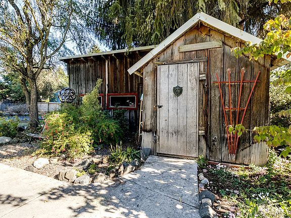Your own "hobby farm" in town w/spacious yard! Master suite w/dual sink vanity in private bath & direct access to patio. Kitchen features custom cabinets w/slide outs, eat bar peninsula, wood floors, pantry, & opens to living & dining room. Living room w/cozy woodstove fireplace & french doors to patio. Large fenced yard w/paver patio, 1700 Sq Ft garden area w/raised garden beds, fruit trees, berries, & adorable outbuilding/shed w/loft.