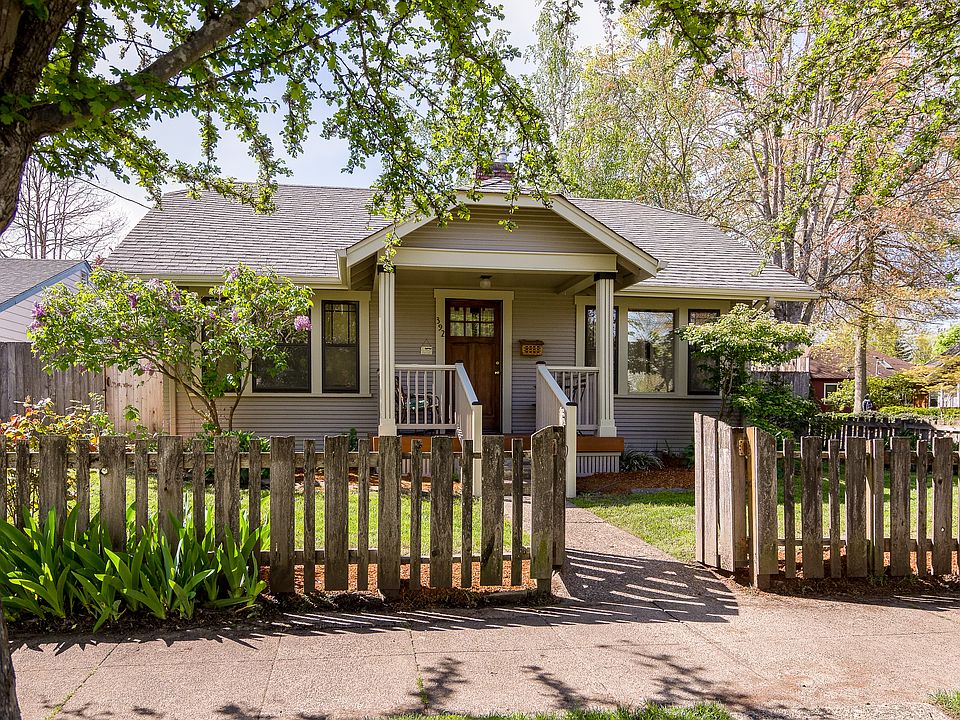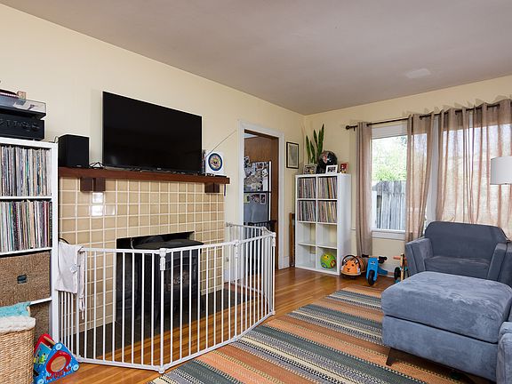 Incredibly cute garden cottage with 2 living areas. Tile kitchen w/light-filled nook, stainless appliances, gas range and charming exposed brick. Hardwoods, gorgeous, glass pocket-doors between living and office/maybe 3rd bedroom, gas fireplace insert. Garden a delight, full of food, lush pathways, sheds, garden gates. Sharply tiled bathroom featuring vaulted ceiling w/skylight. Sublime location. Extensive fencing gives wonderful privacy. 1-bed rear living-space off private courtyard is lovely.