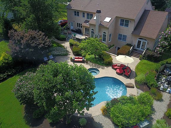 Stunning & spacious Madison floor plan home on a gorgeous lot with many updates featuring a custom Pool designed by Ted Pools! This 4 bedroom, 4.5 bathroom home also features a conservatory & finished lower level with a walk out to the rear yard. The open floor plan features Solid Hickory Hardwood floors, front & back stairways and windows galore with Plantation Shutters, custom window treatments & blinds. The contemporary custom Kitchen features Cherry Shaker cabinets including a built-in pantry, an Oversized island with Leathered granite surface and stainless steel Monogram appliances including 5 burner Gas cooktop, slim vented hood, 48 built in refrigerator, 30 microwave / convection / speed cooker oven, 30 Convection Oven and Dishwasher. The kitchen opens to the 2-story Family room, featuring a gas fireplace & view of the rear oasis. Completing the main level are an office with cherry built-ins designed to facilitate work from home, and a conservatory with double doors provides added backyard access. The 2nd floor features a large Master suite, sitting room & double closets with an additional room (flex room) & master bathroom. 2 bedrooms share updated Jack/Jill bathroom, & the 4th bedroom is a Princess suite with private bath. The lower level will WOW you! Comfortable for lounging or entertaining, it is finished with Custom Oak bookcases and stone surround, Hammered copper gas fireplace insert with a heater/blower, Custom Oak Bar with copper sink, 2 beverage chillers, dishwasher and accent lighting, Conditioned wine cellar with racking/bins for 500 bottles, a second Office with large storage closet and a Full bath with shower. There is also a storage room and a workshop! Double doors provide access to the rear yard. Pool Oasis is a must see with spa and waterfall, and is deep enough for diving. A real entertainers delight. A MUST SEE!