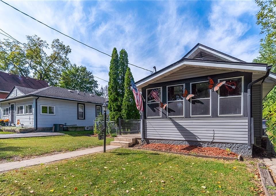 Darling bungalow in Highland Park just blocks from restaurants, coffee shops and more. You'll enter through the 3 seasons porch perfect for an entry/mudroom or home office. Sunny kitchen with tons of cupboard space and subway tile backsplash. The Dining room with window seat and built-in is full of charm. Main floor bathroom with wainscoting and vintage claw foot tub. Extra long bedroom on the main with more than enough room for your king size bed. Lower level is partially finished with 2 no conforming bedrooms and all plumbing fixtures for your second bathroom. Fully fenced backyard with large concrete patio. 2 sheds, Driveway parking and parking for 2 in the back. In 2017 sellers added all new foundation and an egress window. Maintenance free siding, Dry Basement, New roof ,Furnace and Water heater in 2010 and AC in 2014, All appliances included. All information obtained from Seller and public records.