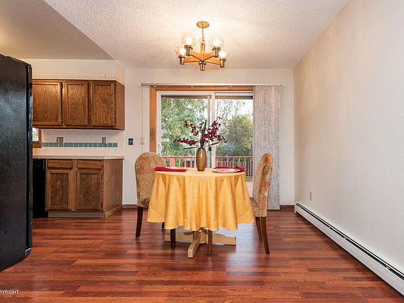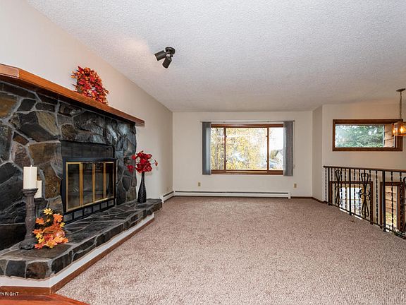 Summer is coming! Enjoy BBQ's with friends/family on this beautiful huge deck overlooking fenced treed backyard! 4bd, 2 bath & bonus rm. Living room w/ lg windows, fireplace, bright dining area opens to huge deck, baths w/ beautiful glass doors. Fresh paint, brand new flooring. Two sheds for all the toys! Built in shelving in bdrms, 2 car garage & both sheds. Great home in West Anchorage! New boiler and new dishwasher. Sunny west facing deck overlooking large backyard, great atmosphere to garden, relax, grill while the kids/dogs play. Easy to view.