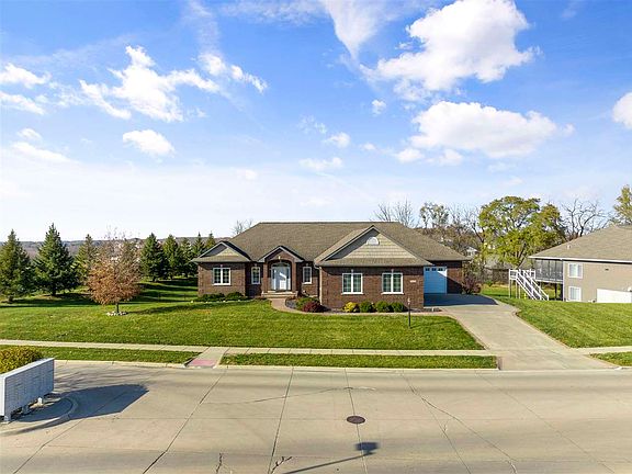Welcome to this solid 2007 Parade of Homes brick walkout ranch, on acre sized level lot that boasts 5 bedrooms, 3 baths and lives LARGE in 4300 square feet! Lots of extra space for hobby and recreational vehicle enthusiasts! From the first steps inside, you will appreciate the light and bright open concept layout that combines the living room, dining room and kitchen into a floor plan that anchors the homes central living space while providing flanking bedrooms on the South side and primary suite on the North. The maple cabinets, granite countertops, stainless steel appliances, bar height seating, 8 foot island and walk in pantry all enhance the cooking enthusiasts experience. The views of the yard and surrounding neighborhood are far reaching while still offering significant privacy. Retire to the main level primary suite, with backlit trey ceiling and enjoy a spa like experience in ensuite bath with jacuzzi tub and full shower. Entertainment awaits in the lower level walk out with an expansive recreation room equipped with 2nd fireplace, 2nd kitchen and adjacent enclosed patio space. You can choose between watching a movie or favorite binge in your home theatre (all viewing equipment remains) or ease the tension away in the home gym space with rubber flooring and ample light. An additional garage on the back side of the home can provide garden/yard equipment storage or be additional space for any car enthusiast. The fenced back yard with sprinkler system is ideal for backyard barbecues, pet friendly activities and could be an ideal space for your in ground pool. The Geothermal heating and cooling system enables lowered energy costs.