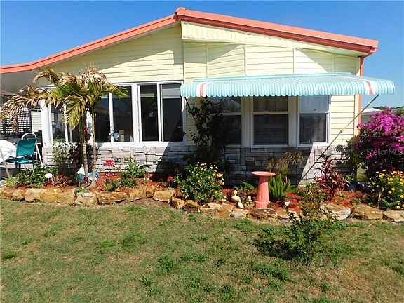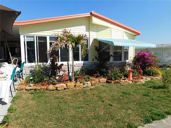 Looking for a pet friendly Florida neighborhood with sidewalks? Why spend your winter in the cold weather? Are you ready to be a snowbird in an active 55+ community where you OWN YOUR LAND? This 2 BR 2 bath home with many updates including siding, custom stone siding, patio, fenced back yard, laminate and tile flooring in main living areas, updated kitchen, ceiling fans, large Florida room, screen room, updated appliances (refrigerator 2020) , laundry (washer/dryer 2017), storage, workshop, and all located in Terrace Park 55 + community. This beautiful home features a metal roof, extra living room, Florida room, screen patio (11'x11'), open floor plan between kitchen and family rooms. Both bedrooms have plenty of storage and master having ceiling fan. Master bedroom has walk-in closet and Master bathroom has step-in shower. Low HOA fee of $240. per year! This snowbird home features large breakfast bar in kitchen, open floor plan, window treatments, metal roof, newer A/C 2014, storage and work shop (10'x8'). Don't forget it is walking distance to community club house, swimming pool, shuffleboard courts, and community has wonderful sidewalks for your morning or evening walks. This excellent home is conveniently located near restaurants, shopping, and medical facilities. Call today for showing!