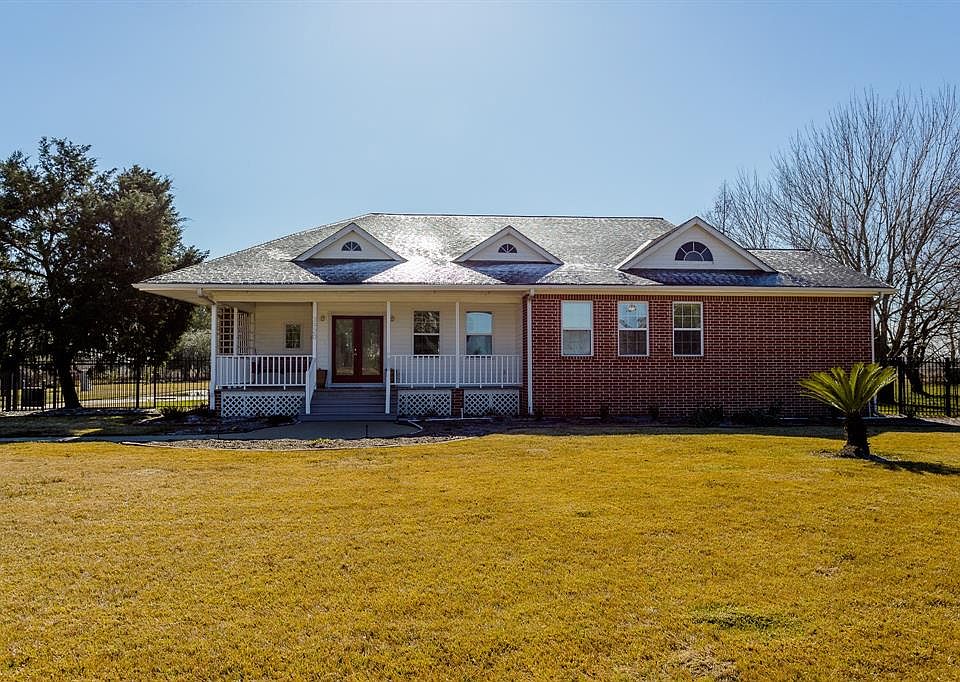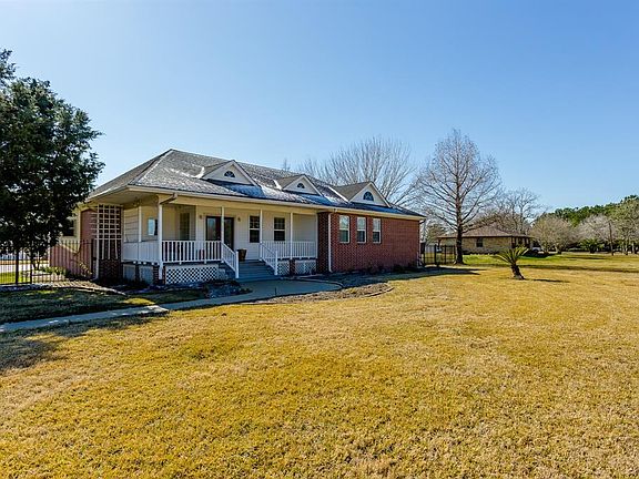 Tranquil country living with ideal location for Houston or Lake Jackson commuters. This fantastic ranch style home is located on 1.75 acres, fenced-in saltwater pool w/waterfall, cozy front porch with a swing, and large back covered deck off kitchen. Inside you'll find open floor plan with large kitchen, 5-burner gas grill, and lots of cabinets; the family room has gas fireplace and is open to dining room or separate seating area. HUGE master bedroom features a large walk-in closet and spacious bath. Large secondary bedrooms share a full bath. Utility room is perfect "mud room" with laundry area and half bath; it also has access from back porch area. This property is ideal for anyone in need extra storage space; there's RV or boat covered parking, work room, and garage has staircase leading to floored-in attic. Horses allowed! NO HARVEY FLOODING IN HOME per sellers.