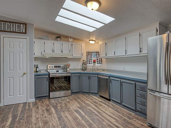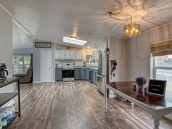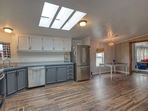 This beautiful single level manufactured home on 0.34 acre lot is waiting for you. Enjoy 1,764 sq ft. all on one level, main floor laundry, main floor master bed/suite, main main main floor. 3 bedrooms 2 bathrooms, 2 living rooms, large open kitchen and dining room. Home has a lovely back patio for outdoor relaxing. Title has already been eliminated. Gas forced air, A/C. New kitchen appliances and a 3, possible 4 car garage with shop area and loft. Don't miss out on this home!