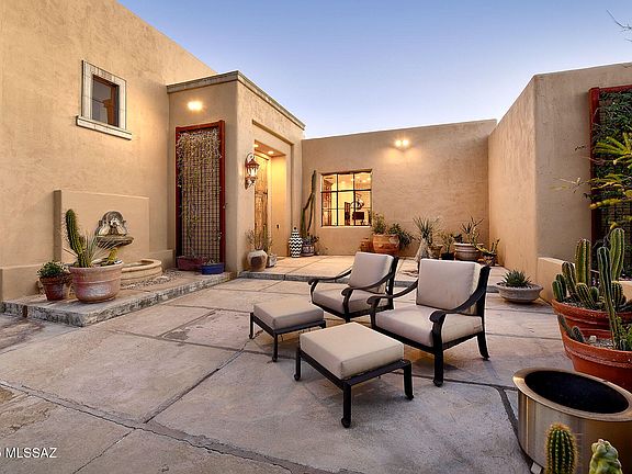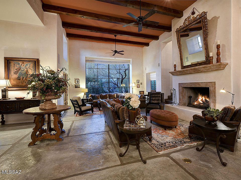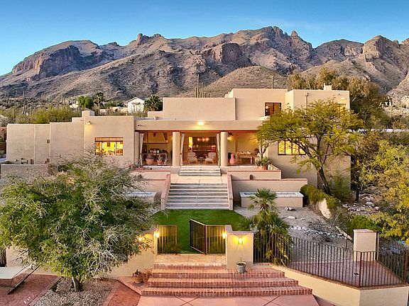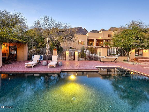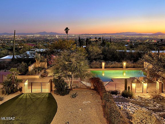 A timeless Spanish Colonial Masterpiece with unmatched city and mountain views.Located on a quiet cul-de-sac near the top of Alvernon way and nestled in the coveted Catalina Foothills, this meticulously crafted 4-bedroom, 4-bathroom home spans 4,025 square feet of luxurious living space on an expansive 0.88-acre lot. With sweeping Catalina Mtn, Finger Rock and Tucson city views, every detail has been thoughtfully updated, masterfully blending timeless Spanish Colonial charm with contemporary sophistication. Enter through a grand front courtyard, complete with a tranquil fountain, and pass through the impressive 11' historic mesquite hacienda door, imported from Mexico. Inside, you'll be welcomed by a magnificent great room featuring soaring 16' ceilings, a ornate wrought iron chandelier, beautiful faux stone flooring, and handmade steel windows & doors. The walls are adorned with refined imperial plaster, creating an ambiance of warmth and elegance. This home has undergone a stunning transformation, with significant upgrades throughout. The chef's kitchen, fully redesigned in 2022, boasts top-tier finishes and modern appliances, while the bathrooms have all been completely remodeled. The laundry room has also been updated for added convenience. The luxurious primary suite, remodeled in 2022, offers a serene retreat with Venetian plaster walls in the bedroom and a custom California Closet. Rustic Manganese Saltillo tile, installed throughout the bedrooms, primary bathroom, and closet, adds a touch of natural elegance that complements the home's overall aesthetic. Step outside to enjoy the exceptional Tucson weather in your expansive backyard. The outdoor space includes a sports court, lush artificial grass (2021), two oversized concrete vegetable garden planters, and a brand-new BBQ (2022), perfect for entertaining and outdoor cooking. The pool area has also been updated with a new pool pump (2020) and sand filter (2021), ensuring a pristine swimming experience year-round. This home features a range of updates for optimal comfort and convenience, including a tankless water heater (2019) on the east side, new AC/furnace units (2018) on the east side, and newly installed water heaters (2024) and AC/furnace units (2024) on the west side. A central vacuum system (2023) enhances daily living with ease. Located in the prestigious Catalina Foothills, this home offers unmatched proximity to top-rated schools, shopping, dining, and all that Tucson has to offer. With its expansive lot, exceptional updates, and flawless attention to detail, this residence stands as a true masterpiece.