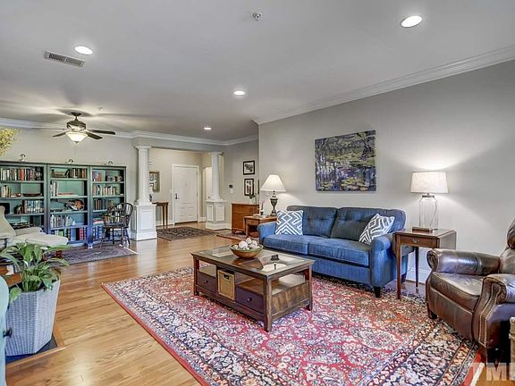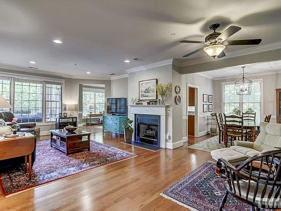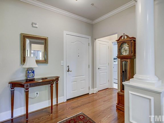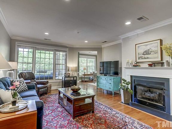 Luxury 2nd floor condo in prime Raleigh location. Open floor plan. Hardwoods thruout most of unit. Spacious family rm w/ gas log fp. Kitchen offers granite tops, s/s appliances (gas range) & subway tile b-splash. Large master has sitting area, his/hers closets, oversized walk in shower w/ separate soaking tub & access to beautiful covered balcony. New HVAC 2015. New water heater 2018. Newer carpet. Elevator access. Extremely convenient to Downtown Raleigh, I-40, RTP, RDU & PNC Arena. Smoke free building.