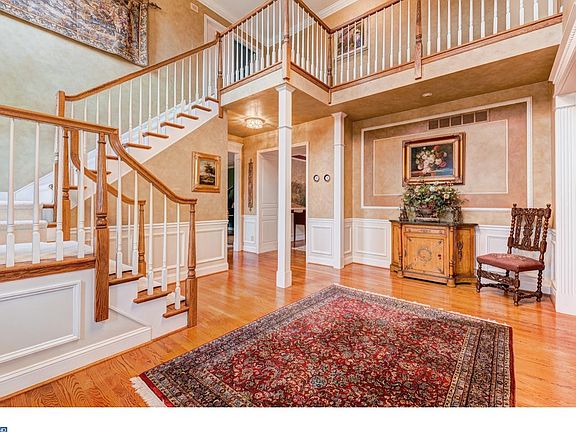 Gorgeous expansive Colonial with luxury details in a tremendous location with long distance views from both the front and rear! Just a five minute drive to Doylestown Borough, on a wide street in a lovely community of stately homes, this beautifully landscaped property features a fully fenced in ground salt pool with concrete patio surround and multiple decks to relax and enjoy the rolling hills. Inside is a dramatic two story center entrance hall with shadowbox wainscoting, 12 arm chandelier, architectural detail and deep moldings. Custom window treatments and hardwood floors are found through most of the main floor. To the left is the living room with fireplace and glass doors opening to a cozy deck. What a wonderful place to relax and enjoy the view. The formal dining room has, as its main feature, a gorgeous landscape mural by Bucks County Artist Dot Bunn. Blending in perfect accord with the architectural detail and d~cor, the painting is just lovely and a centerpiece for elegant dining. Through the dining room to the spacious kitchen featuring center island with cooktop, double ovens and generous cabinetry. So much counter space including prep desk makes it easy for everyone to lend a hand. A separate breakfast area is large enough for a full sized dining table. Stepping down is the family room with vaulted ceiling, stone fireplace, new carpeting, wall of windows and glass doors to the second rear deck. A large laundry room leads to the three car garage. In addition a handsome study with a full wall of built-ins and a powder room complete the first floor. There is both a formal turned front staircase and more casual rear stairs to the second floor. Through French doors is the elegant master suite with tray ceiling, ensuite bath and walk in closet. A guest suite with ensuite bath is the next of the four bedrooms with the additional two spacious and beautifully decorated bedrooms sharing a well appointed hall bath. The finished basement is a treat. A home theater with tiered seating and screen, a separate exercise room and a lower level family room with black granite wet bar seating makes a great space to entertain. A full bath with glass enclosed shower and textured tile floor is handy for coming in from the patio and pool. New Lennox high efficiency HVAC, new expansion tank and well pump, new septic pump. Great location just a short drive to Doylestown Borough, major routes and public transportation but set above it all to enjoy the peace and quiet!
