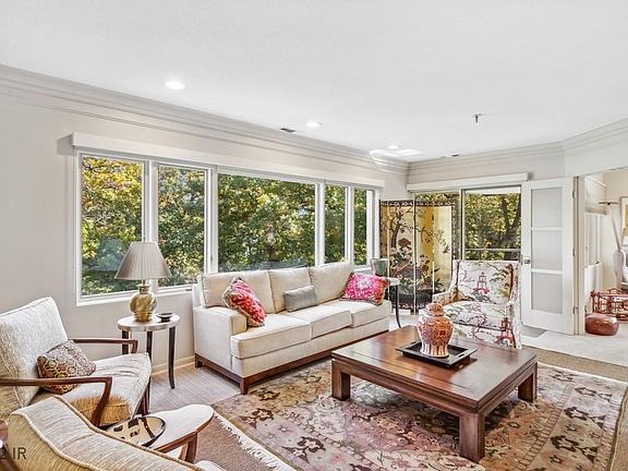 Barbican end unit condo with sunny windows on three sides (north, east & south) and 2 outdoor decks with view of woods and city. This 1,736 SF condo was extensively updated. The floor plan includes wood floors, two family rooms (one with office area); a wet bar with wine refrigerator, kitchen with white cabinets, quartz counters, stainless steel appliances, large dining area; half bath; separate laundry room with sink, washer & dryer; large master bedroom with walk-in closet, master bath with 2 sinks & tiled shower; plus underground parking. The Barbican building has an indoor pool with hot tub, exercise facilities, community room and guest suite. Close to shopping, restaurant, churches and area attractions.