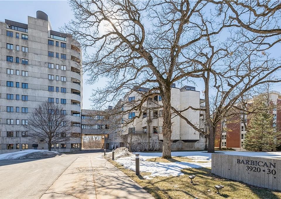 As elevator opens into 4th floor lobby you know this is an amazing opportunity. 2266 ft of high end finishes. Expands entire length of the west side of the building plus bridge over driveway. Major renovations in 2012/13 by a previous owner. Quality enhancements by this Seller. Welcoming foyer. Hallways with closets galore and wet bar. Gracious LR & DR. Wow kitchen features 6 burner gas stove, SS appliances, custom cabinets & hidden tv that raises up by remote. Espresso wood floors in main areas. Marble floors & vanities in bathrooms. Family Rm w/ fireplace and custom built-ins. Master Suite enjoys treed southern view. Walls for displaying art. Barbican offers indoor pool, sauna, workout room, party room and guest suite. On site manager. New York City in Des Moines! (Sellers purchased a 2nd garage space which is included.)