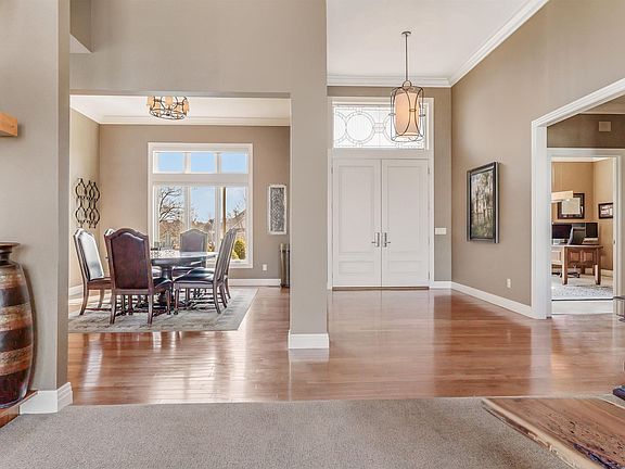 - Breakfast Bar, Bookcases, Ceiling-9+, Ceiling Fan(s), Vaulted Ceiling(s), Walk-In Closet(s), Countertops-Solid Surf, Crown Molding, Eat-in Kitchen, Entrance Foyer, Guest Quarters, Kitchen Island, Pantry, Double Vanity, Wet Bar, Main Level Bedroom Suite, Formal Dining Room, Great Room