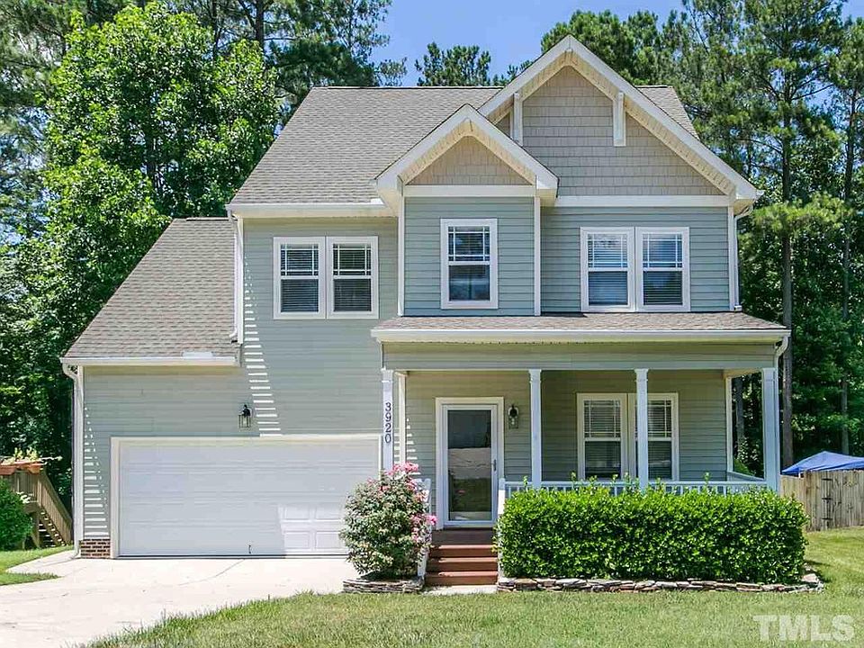 Amazing views of private wooded lot that backs to Neuse River. This updated 4 bedroom home offers large master w/separate study/sitting room + 3 additional secondary bedrooms. Formal dining, updated kitchen w/granite counter tops & SS appliances, & open family room w/FP. Paver Patio, Updated kitchen, new carpet & paint in 2016. New roof 2017. Unfinished 3rd floor. Enjoy wooded backyard- tons of privacy or sit on front porch enjoying the culdesac & visiting with neighbors. HOA includes pool membership.