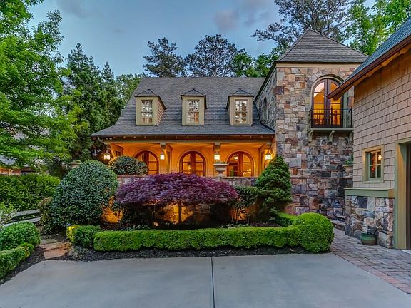 Country English retreat in East Cobb. Encapsulated by a lush setting in a small enclave, this gated shake & stone sanctuary is filled with handsome finishes inspired by a European cottage & chic Highlands lodge! From the rough-sawn beams & soaring ceilings to the arched entries, 5' planked flooring & stoned accents, this home is an escape from the ordinary. Purposeful floor plan with master on the main; dining room with french doors to stoned veranda; 2 covered porches overlook green space; guest en-suite over garage; terrace level with 2nd en-suite master, office, pool room and additional dining area. Sensational stone outdoor kitchen and fire place complete this one of a kind home. Seller's passion for perfection is evident throughout!