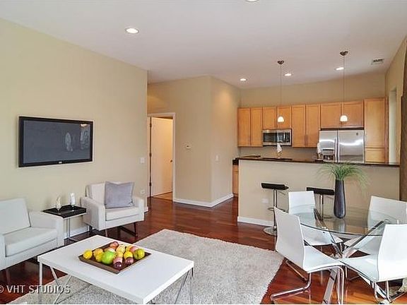 Beautiful corner home in boutique elevator Lakeview Station building with south and west exposures. Large living room area that opens to private deck. Brazilian cherry hardwood floors. Kitchen with granite and stainless steel appliances. Stone finishes in bathroom. Large bathroom and attached garage parking space included. Walk to public transportation (Sheridan Red Line or Addison Red Line) Wrigley Field, new Wrigleyville Nightlife and restaurants from this fantastic location! Renter pays for electric and gas. Landlord will pay water.