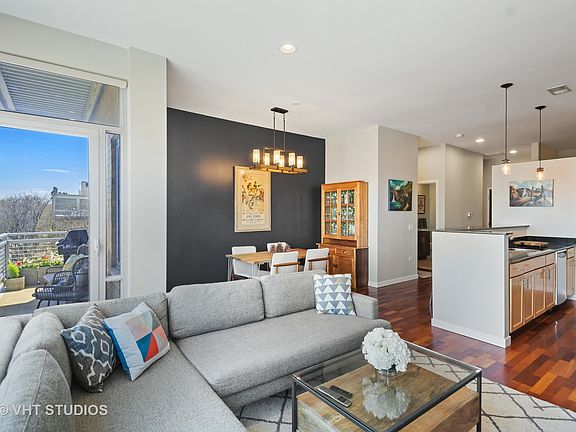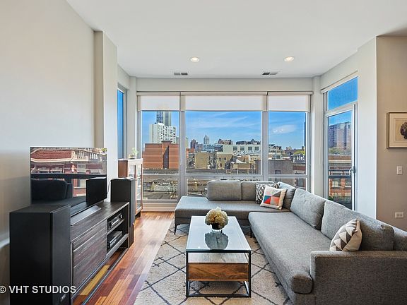 Beautiful, bright, corner unit in a boutique elevator building with floor-to-ceiling windows! This newer construction home will wow you from the moment you walk in with unobstructed views, 10 ft. ceilings, open floor plan, and hardwood floors. This sun-filled space provides plenty of room for your living and dining room furniture and leads to a large private balcony with downtown skyline views. Kitchen features stainless steel appliances, 42'' cabinets, granite countertops, and breakfast bar. Enjoy the master bedroom suite with large walk-in closets and marble bathroom with spa tub, separate shower, dual vanity, and lots of storage. Washer/Dryer in unit. Deeded heated garage parking space and additional storage included in the price! One block to Sheridan L station and walk to great shops, restaurants, Southport Corridor, Wrigley Field, Beach, and more!