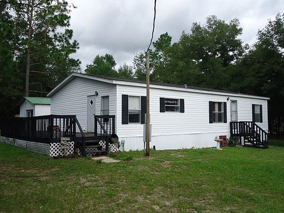 GREAT LOCATION!! This affordable 2000 Homes of Merit home features a split plan with 3 Bdrms and 2 Bathrms. Sitting on a 1 ACRE lot on a country lane, just 300' off the paved road, you have the best of both worlds! Easy commute to Bell, High Springs, and Gainesville. The country inspired home dcor and updated, wood laminate and vinyl floors give it a fresh feel. Master Bath has separate garden tub and shower. Enjoying the beauty of the property and relaxing is easy from the 8'x28' deck. If you have dogs, the kennels will be very useful to you! Also useful is the workshop and utility building here. Just a little over 3 miles to Bell and close to freshwater springs and the Suwannee River. Call to view this property today!