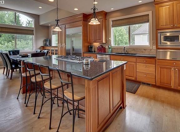 Entertainers Dream! Vaulted ceilings and wide open spaces.Master suite on the main. Kitchen/great room looks out to a new stamped concrete deck, fabulous yard and amazing custom sport court. Large bedrooms, bonus w/wet bar, playroom, media rm, wine cellar, den & spacious loft! Outdoor living space with stone covered patio and fireplace. All on a cul-de-sac!